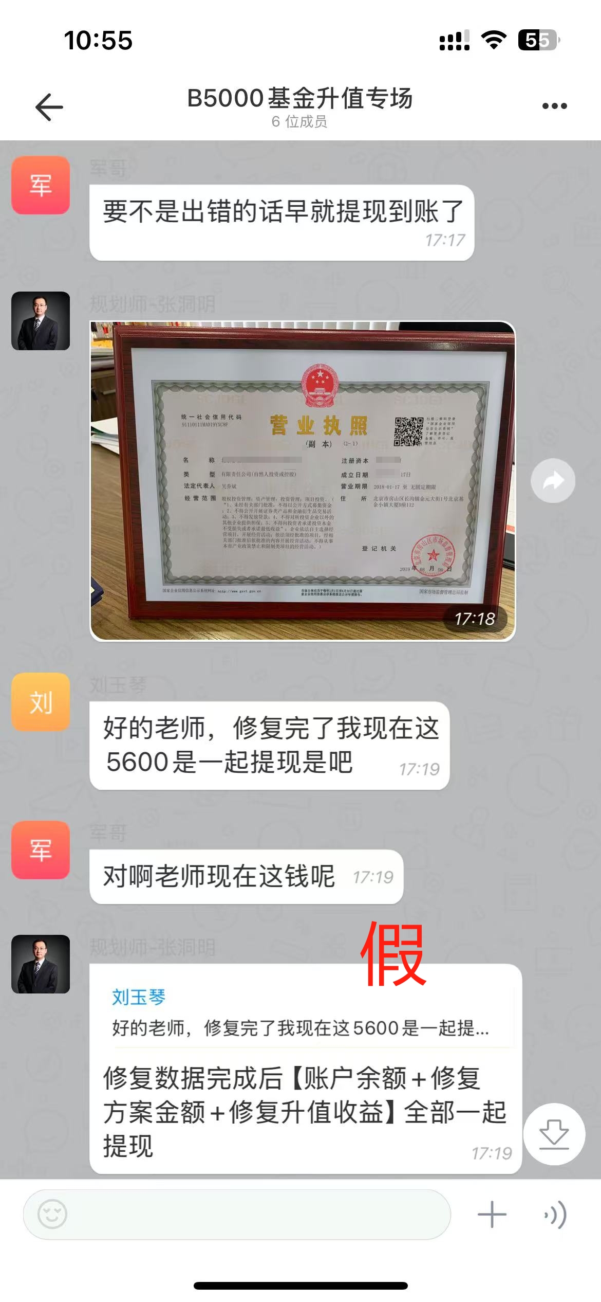 “客服”稱(chēng),之前的公司被一家基金公司收購(gòu)了,所以現(xiàn)在提供的退款渠道只能通過(guò)購(gòu)買(mǎi)基金增值的方式進(jìn)行,并且還發(fā)送了偽造的營(yíng)業(yè)執(zhí)照打消其顧慮。隨后,將信將疑的朱先生就在客服的指導(dǎo)下下載了一款金融理財(cái)app,并根據(jù)回款方案購(gòu)買(mǎi)了基金。